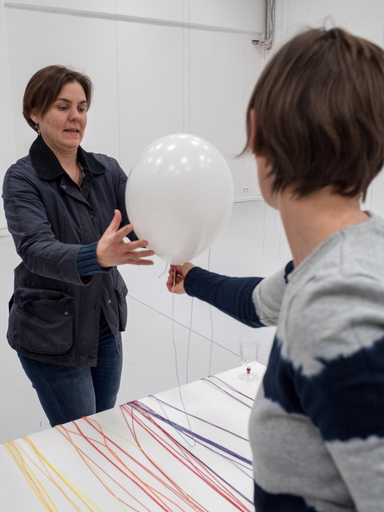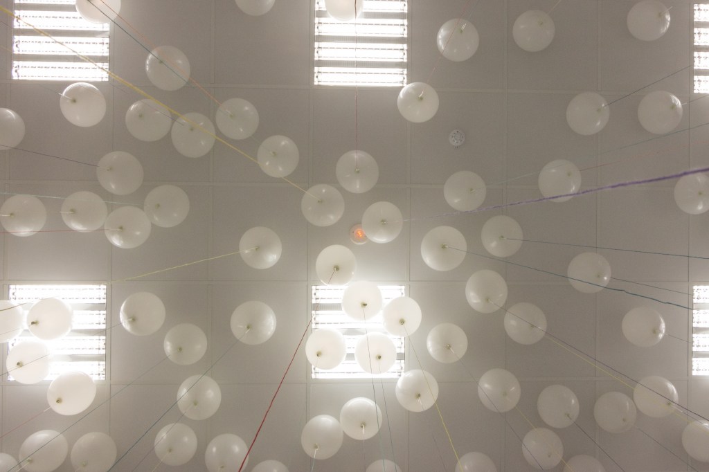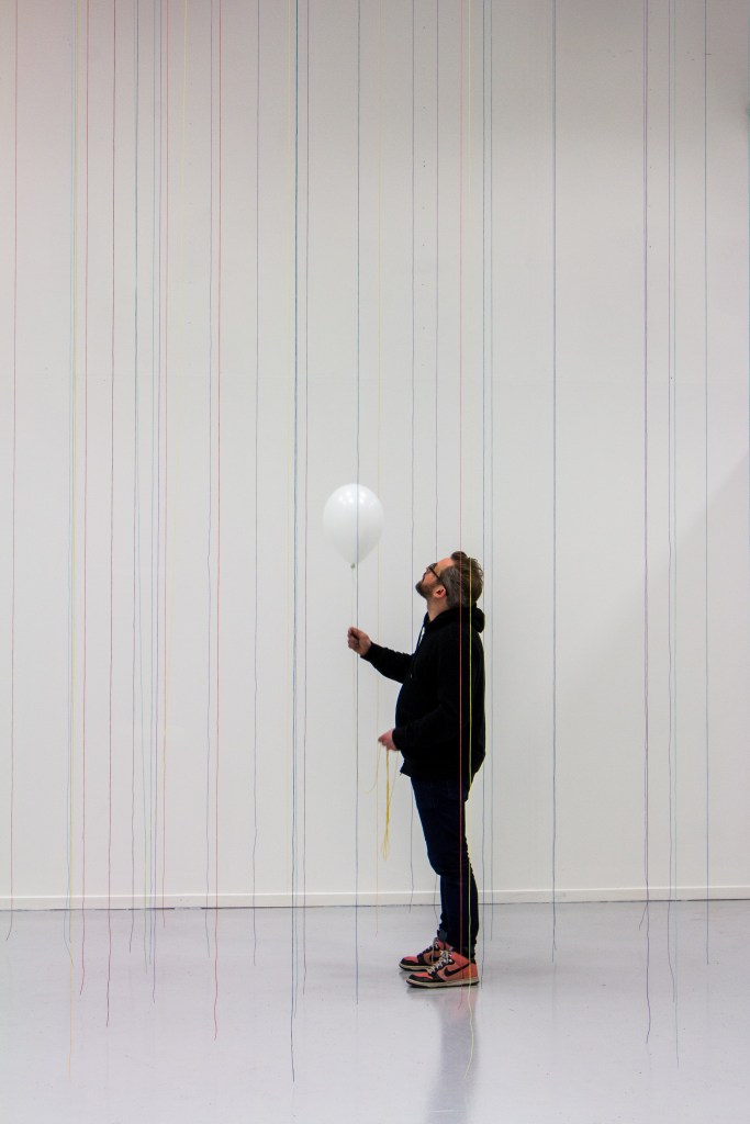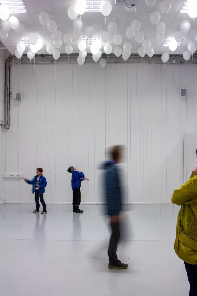 A stand towards standstill / Afstaða til kyrrstöðuExhibitions InstallationsOctober 25, 2017May 3, 2023 A stand towards standstill / Afstaða til kyrrstöðu, 2015Participatory installation at the Iceland Academy of the ArtsAcryllic paint, cotton threads and helium balloonsDimensions variableText by Jófríður Benediktsdóttir: English / Icelandic Related