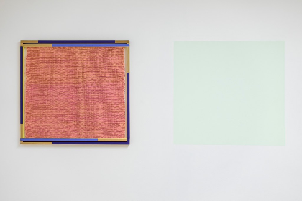 Á sýningunni Mynd eftirmynd er þremur ofnum málverkum teflt fram í samtali við einlita fleti sem málaðir eru beint á veggi sýningarrýmisins. Verkin mynda innsetningu í rýminu þar sem hefðir handverksins og málverksins mætast. Á sýningunni er vísað í hugmyndina um myndleif, þ.e. þegar horft er lengi á sama flöt og sjónum svo beint að hvítum vegg birtist óskýr eftirmynd þess sem horft var á en í andstæðum litum og birtustigi. Málaði flöturinn á veggnum er í lit sem er andstæða við aðallit vefsins og því einskonar myndbirting myndeifarinnar. Á sýningunni eru mörk hins sýnilega og efnislega könnuð og verkin velta upp spurningum um stöðu málverksins sem hlutar annars vegar og upplifunar hins vegar. Efnislegir eiginleikar verkanna vekja upp löngun til að snerta á sama tíma og sjónrænni skynjun áhorfenda er ögrað.